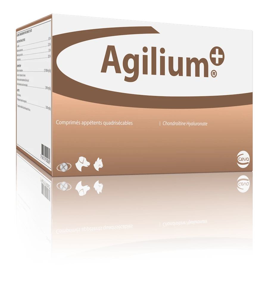 Agilium Plus 360 cps est un complément alimentaire qui aide les cartilages des articulations et améliore la mobilité du chien et du chat. C’est un nutraceutique qui s’administre soit en cure, soit toute l’année et qui agit à long terme. Grâce à l’appétence des comprimés, vous n’aurez aucun problème à le donner à votre animal.