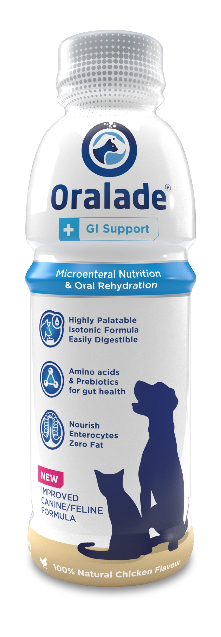 Oralade est recommandĂ© pour la nutrition des animaux affaiblis ou malades, en particulier ceux atteints de pancrĂ©atite, de gastro-entĂ©rite, de blessure de l’oesophage ou de maladie de longue durĂ©e.