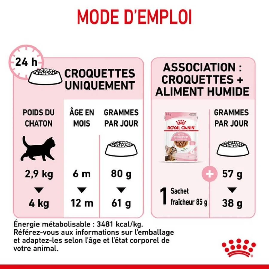 Les croquettes Royal Canin Kitten Sterilised offrent une alimentation complète à votre chaton stérilisé durant sa deuxième phase de croissance (de 6 à 12 mois).