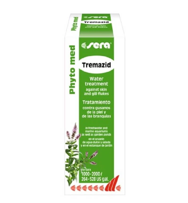 Sera Phyto med Tremazid est un conditionneur d’eau à base de plantes contre les vers des branchies et de la peau.